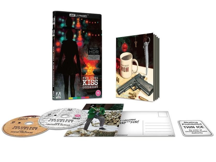 Back in the material world… a reminder that the 2-disc limited edition boxed set of the 1996 Christmas action movie, The Long Kiss Goodnight — written by Shane Black (Kiss Kiss Bang Bang, The Nice Guys) and directed by Renny Harlin (Die Hard 2, Cliffhanger) — was released this week by Arrow Films! Nab your copy now.