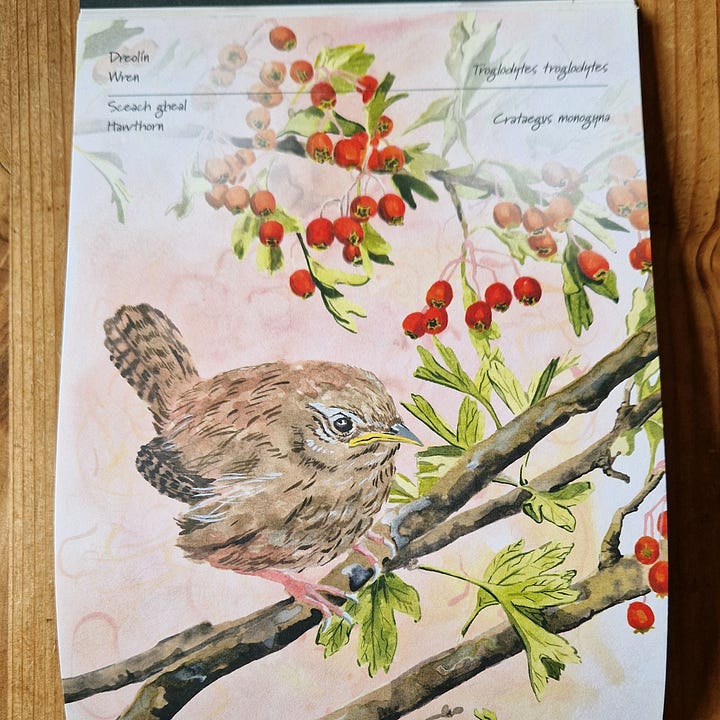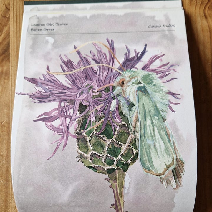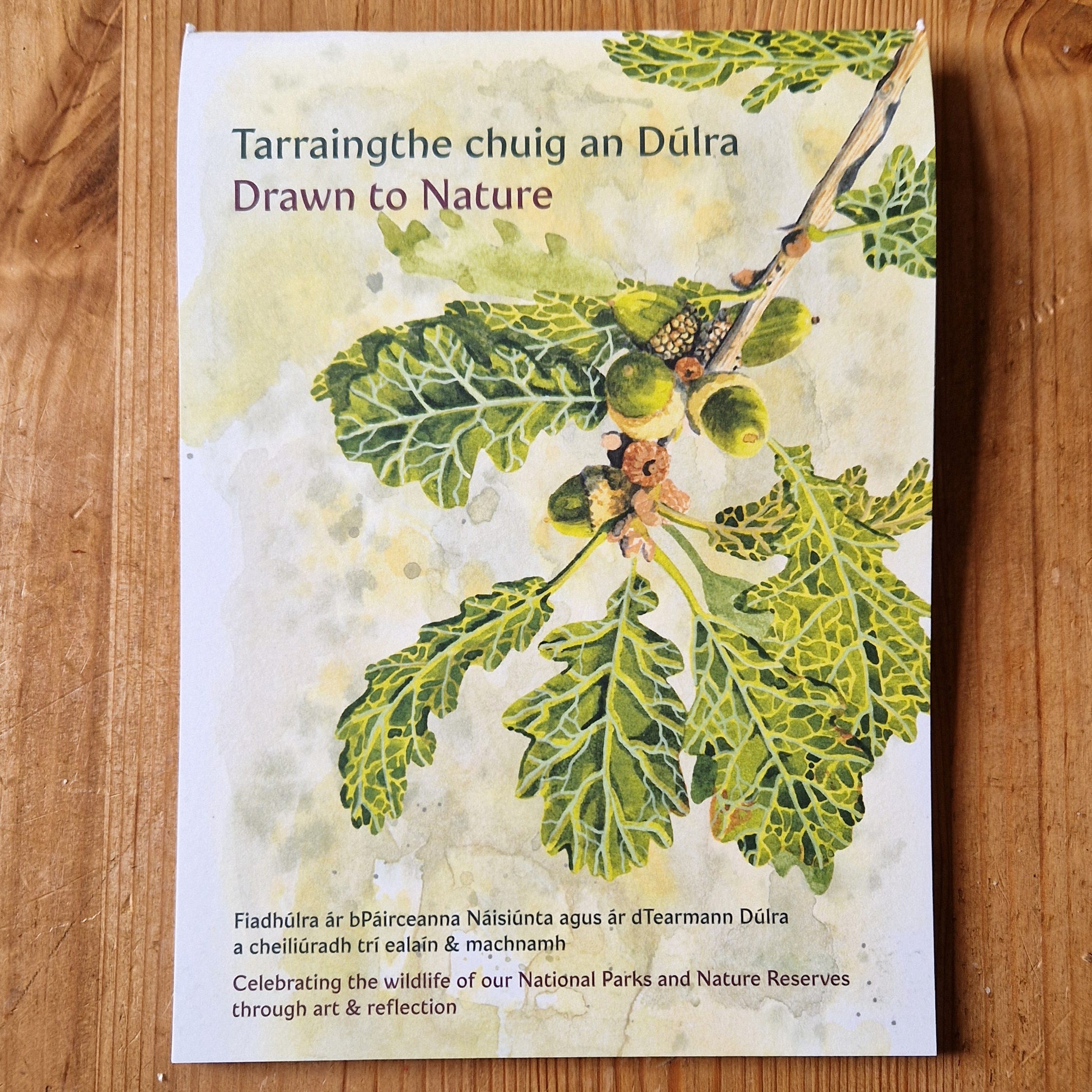 So I immediately noticed a beautifully illustrated art book called Tarraingthe chuig an Dúlra (Drawn to Nature).